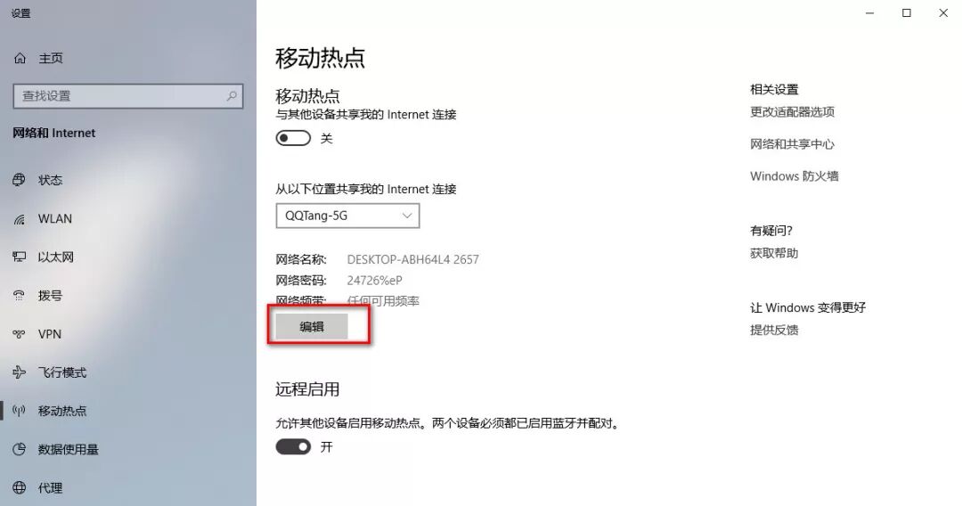 Wifi热点 还记得以前在学校的时候,被校园网支配的恐惧吗?只能用网线连接电脑,用第三方的热点软件,还时不时会导致网卡驱动奔溃。现在win10自带了wifi热点功能,只要你的电脑带有无线网卡,你的电脑就可以成为一台路由器了。在右下角的“通知中心”>“移动热点”,可以先右键设置好wifi名称和密码,在需要wifi的时候就可以直接右下角点击开启。