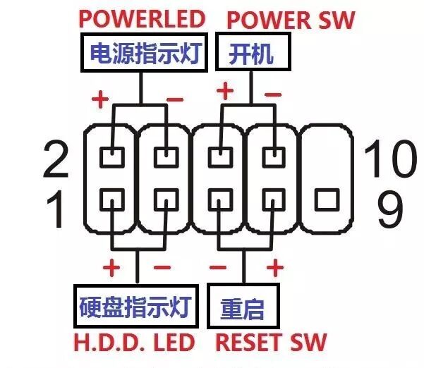 走线也是一个困扰很多小白的问题,但是小鑫觉得除了硬盘灯和开机重启按键的跳线外,其他走线的接口都是可以按照说明书和对应主板接口来的,而且现在的接口都是防呆接口,不会出现插错的情况。只要找对地方就行了,至于跳线的部分,只要根据上图的跳线规则来,现在90%的主板的跳线分布都是这样子的。多试几次就会明白其实很简单的。