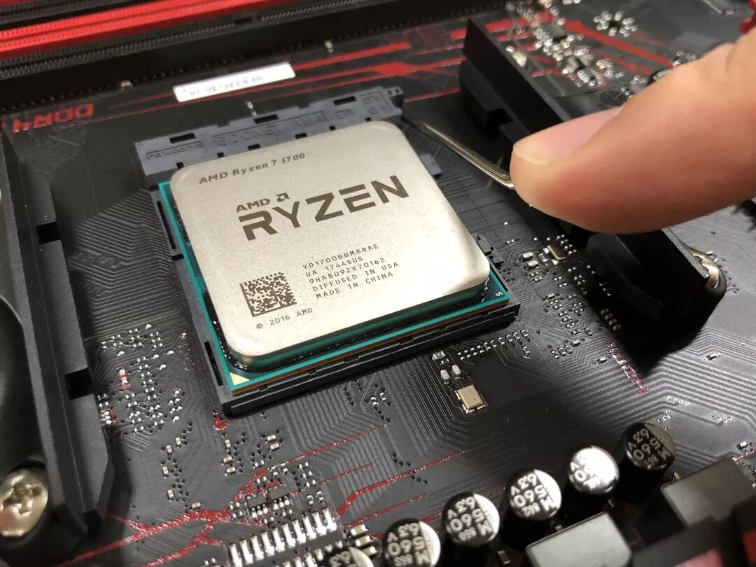CPU的安装需要注意的一点就是要把CPU左下角的金色三角形和主板CPU插槽上左下角的阴刻三角形对准。对准之后,将CPU槽旁边的小杆摇起来,然后把CPU放入插槽中,然后将小杆按下就完成CPU的安装了。
