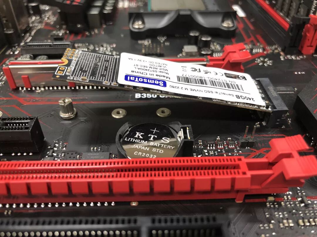 这款主板上的M.2位置的螺丝是在110mm的位置,而小鑫家的M100是2280尺寸的,所以要将螺丝拧会80mm的位置,安装M.2 SSD是非常简单的,只要把M.2带金手指的那面插入插槽,压下后拧上螺丝即可。