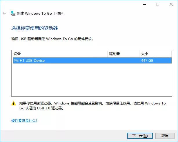 选择我们刚刚自制的移动硬盘,点下一步。