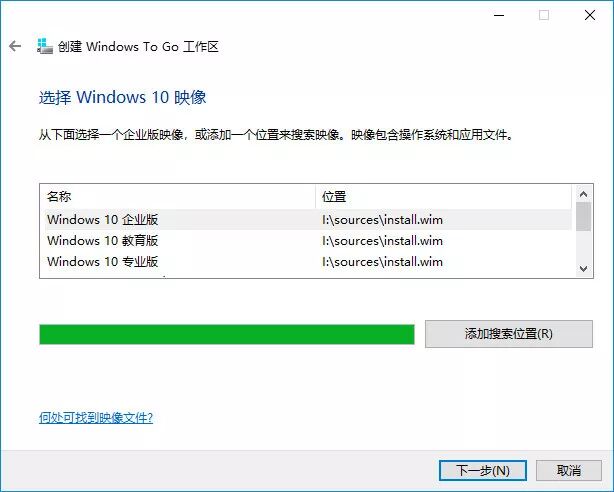 然后在选择win10镜像,安装windows to go只能选择企业版,所以在下载镜像的时候,记得下载带有企业版的镜像文件。