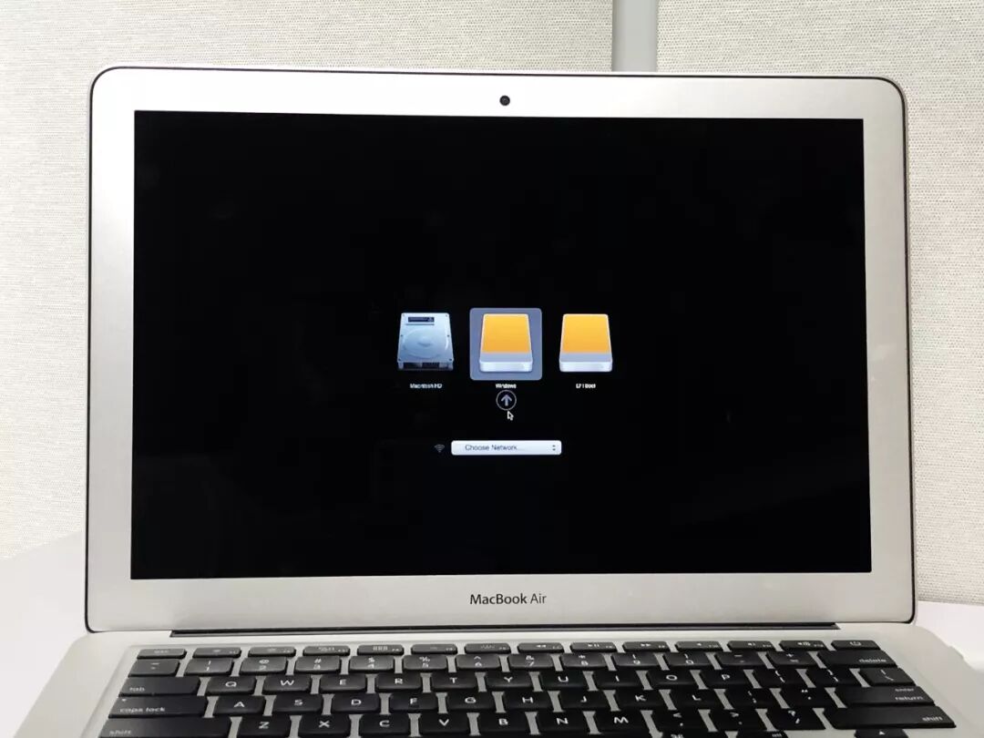 插上移动硬盘后,按一下开机后马上按住option键,直到出现引导界面,选择第二个windows即可进入windows系统,第一次需要稍微设置一下。
